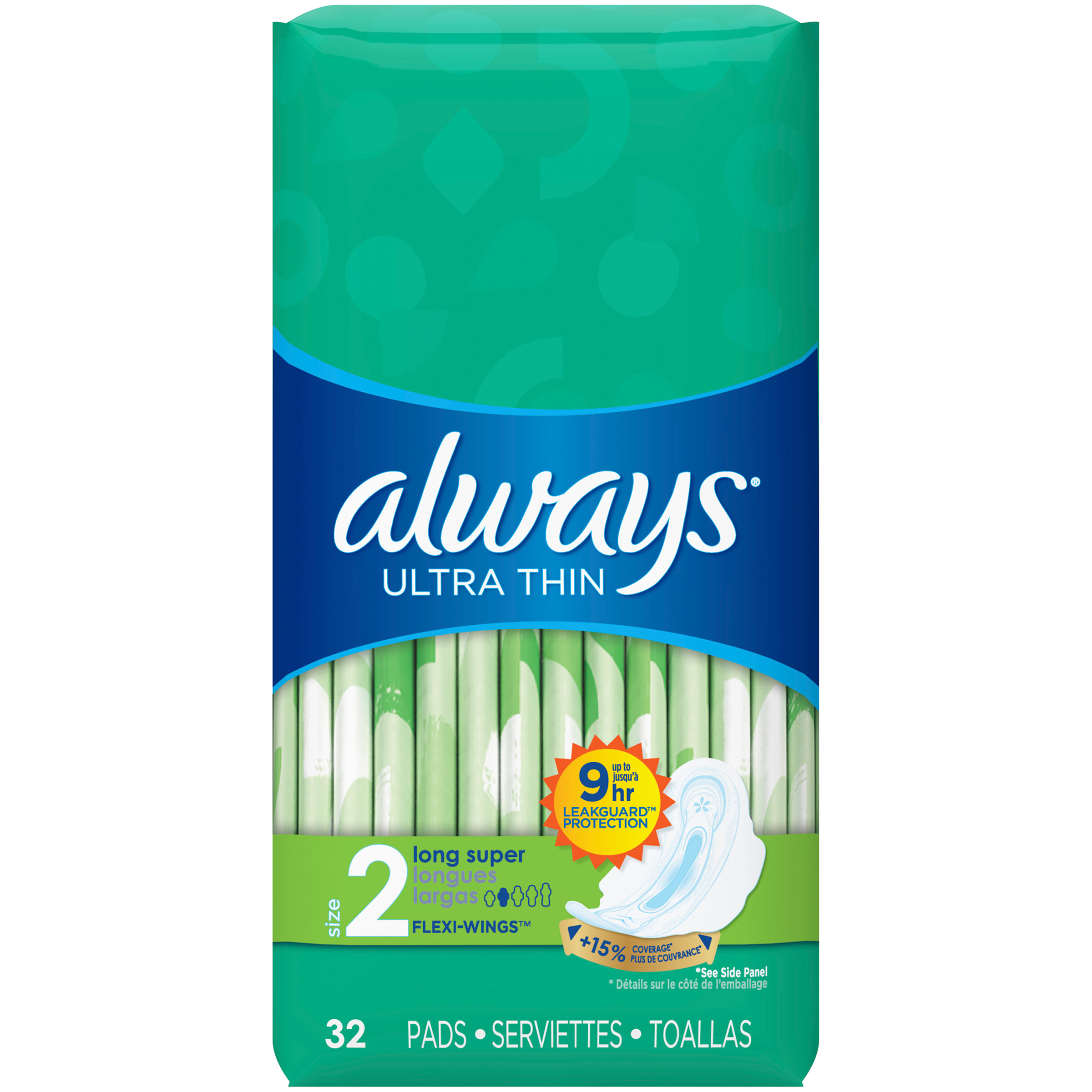Always Ultra Thin Size 2 Unscented Long Super Pads with Wings 32 ct